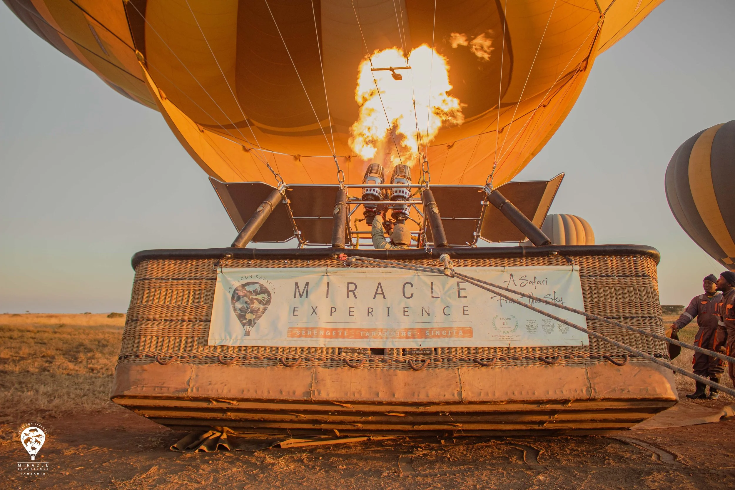 We zien dat alle ballonnen naast ons ook klaar zijn om te vertrekken en binnen nog time stijgen we op. Zodra we los zijn van de grond laat Cesar weten dat we mogen staan. Het uitzicht is vanaf de eerste seconde al prachtig. Dat kan natuurlijk ook niet anders in de Serengeti. Het weer kan ook niet beter deze ochtend, de lucht is kraakhelder.